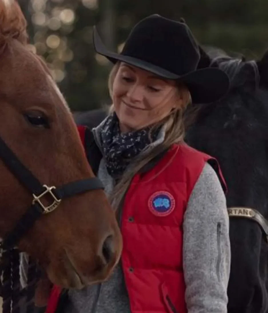 Bring the beloved Heartland charm to your wardrobe with the Amber Marshall Heartland Red Down Vest, exclusively at VogueLayer. Inspired by Amy Fleming’s iconic ranch-style look, this vest is designed for fans who appreciate functional fashion with a touch of Western elegance.