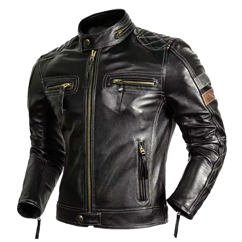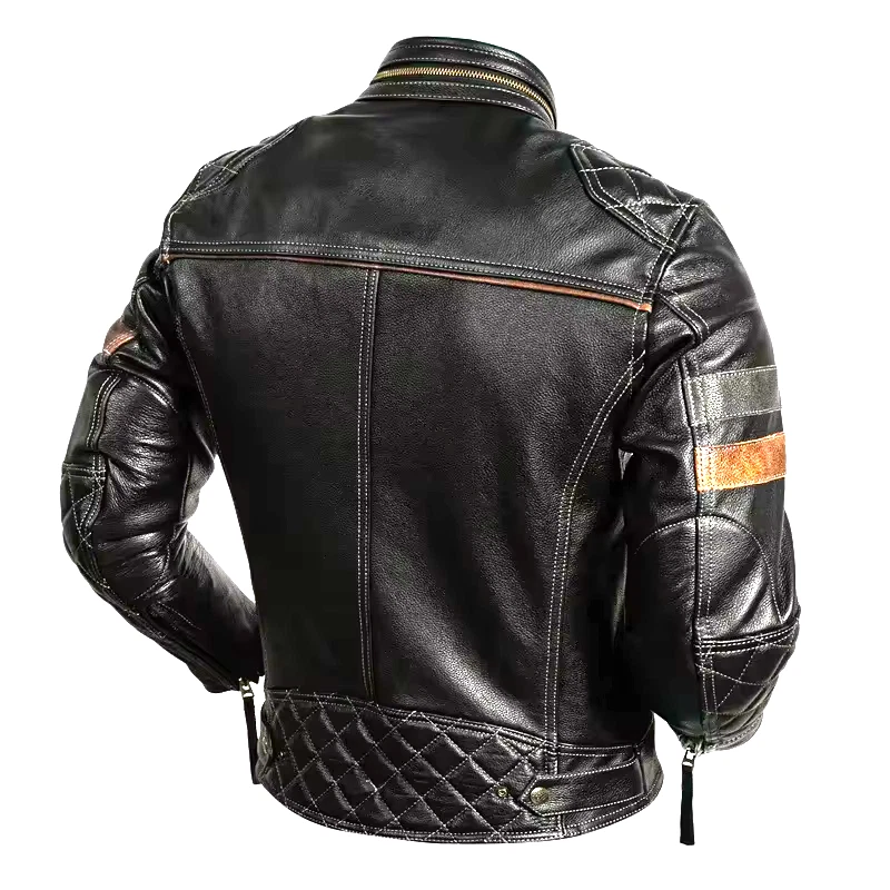 Crafted from 100% genuine top-grain leather, it offers exceptional durability, a rich texture, and a luxurious feel. The standout gold YKK zipper detailing adds a bold modern contrast, giving this classic café racer jacket an upscale, head-turning edge. With zippered chest pockets, vertical side pockets, and secure inner compartments, it seamlessly merges functionality with high-end style.