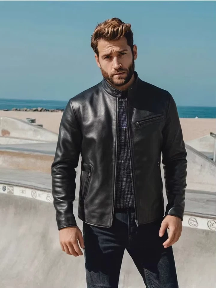 Men’s Black Cafe Racer Leather Jacket – VogueLayer