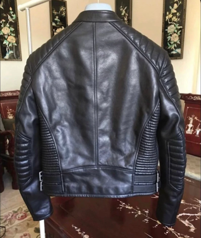 Elevate your edge with the VogueLayer Men’s Black Padded Biker Leather Jacket, featuring quilted shoulders, an asymmetric zip closure, and a sharp moto-inspired silhouette.
