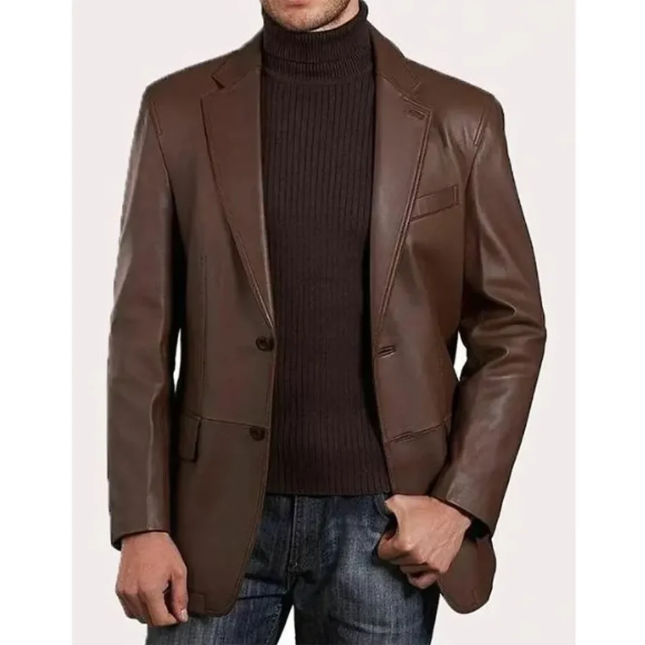 Upgrade your wardrobe with the Men’s Classic Two-Button Brown Leather Blazer from VogueLayer, designed for individuals who value timeless elegance and modern sophistication. Crafted from premium genuine leather, this blazer delivers durability, comfort, and a polished finish that enhances any ensemble.