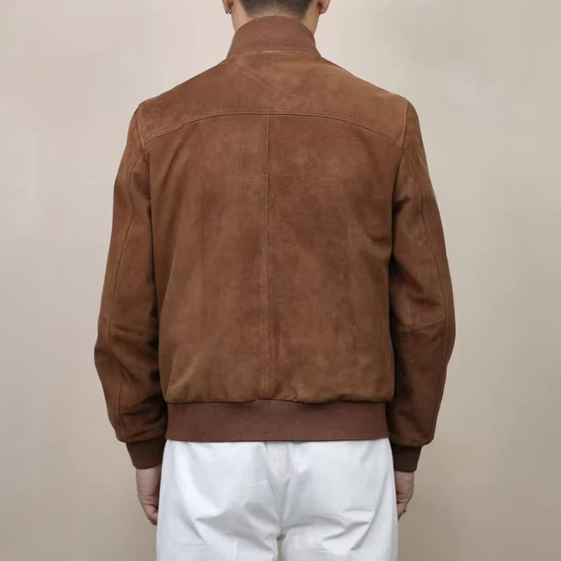 Heritage Brown Suede Bomber Jacket with Utility Pockets