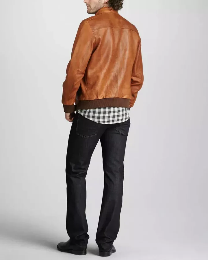 The Men’s Brown 100% Genuine Lambskin Leather Jacket is a sleek and stylish bomber coat made from premium lambskin leather. Offering a smooth finish and classic design, this jacket is perfect for casual wear, adding both warmth and style to your wardrobe.
