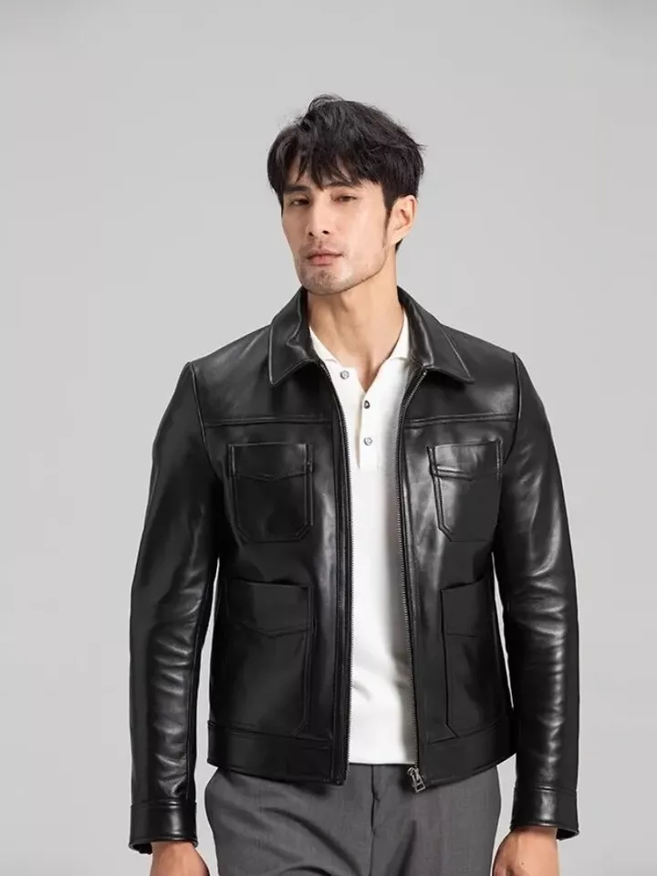 Whether styled with denim for a relaxed weekend look or paired with chinos for a polished city outfit, this utility-inspired leather jacket is built for men who appreciate function wrapped in refined style.