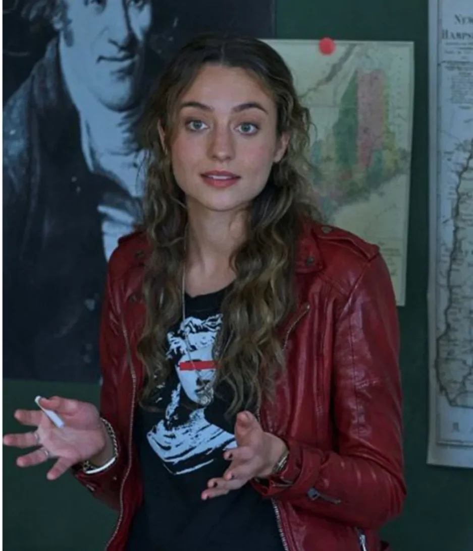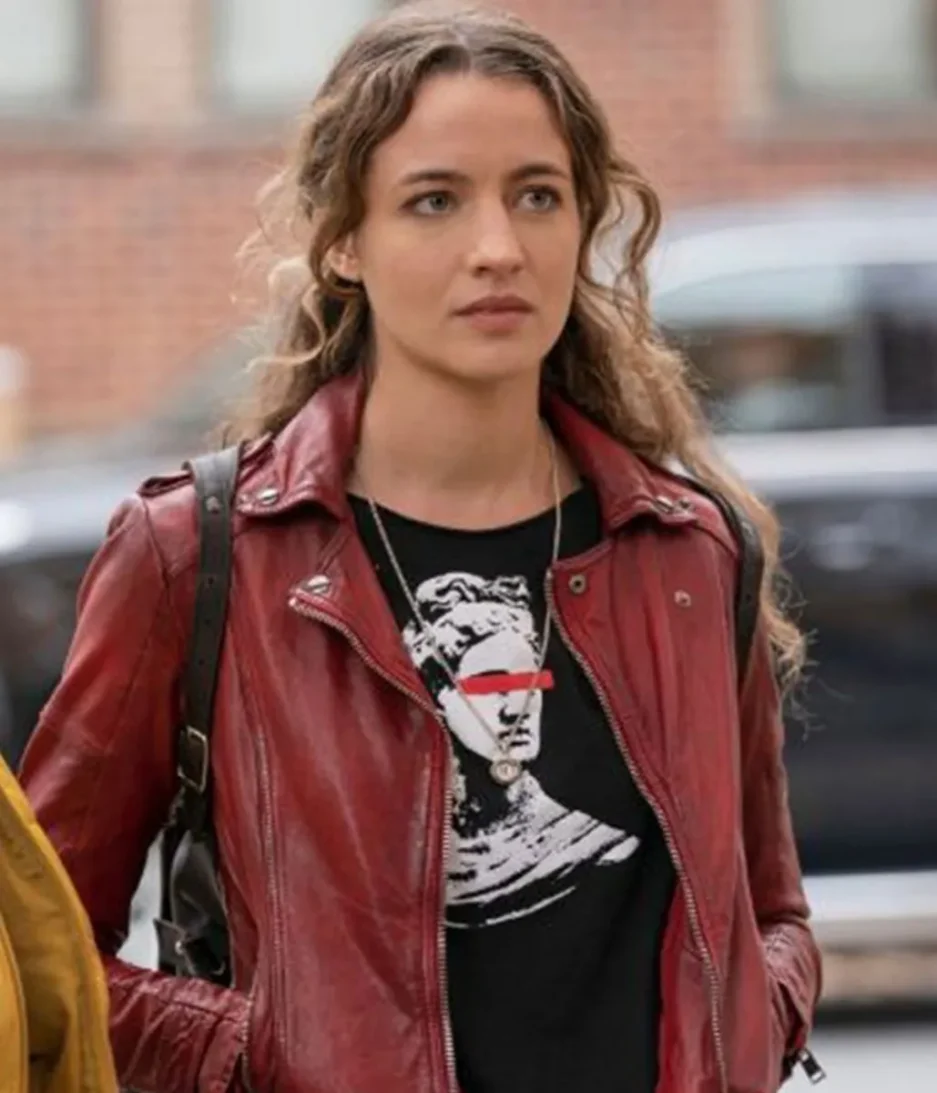 Turn heads with the Stella Baker Red Leather Biker Jacket, exclusively at VogueLayer. Inspired by Stella Baker’s standout look in The Republic of Sarah, this jacket blends modern edge with timeless biker style—perfect for fashion lovers who embrace bold, confident looks.