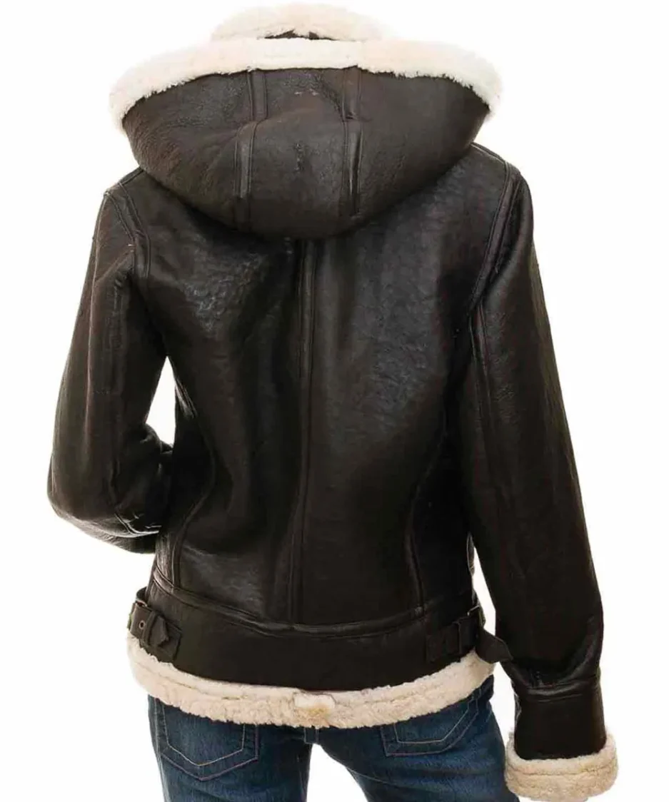 Lined with luxurious faux shearling, the jacket provides exceptional insulation and a plush, cozy feel. The adjustable hood—also trimmed with faux shearling—adds both functionality and a chic touch, making it perfect for colder days. A secure zip-up front and a buckle collar ensure added protection from the wind, while the tailored silhouette keeps your look refined and flattering.