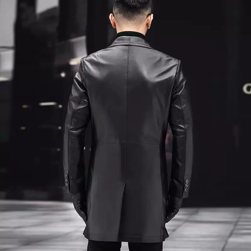 Crafted from high-grade faux leather, the coat offers durability, sleek texture, and cold-weather comfort without compromising on style. The soft thermal inner lining provides warmth during the cooler months, while the tailored mid-thigh length gives it a refined, contemporary edge. With side slit pockets for practicality, this trench-style overcoat is built to complement formal, semi-formal, and smart-casual outfits effortlessly.